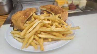 Our menu sets the tone for a casual and relaxed dining experience. Take your pick from our range of dishes, including 100% ground beef burgers known for their juicy perfection. Explore additional options like flavorful chicken and seafood dishes, as well as comforting hot sandwiches. The atmosphere is laid-back, allowing you to unwind and enjoy straightforward, delicious flavors without any fuss.